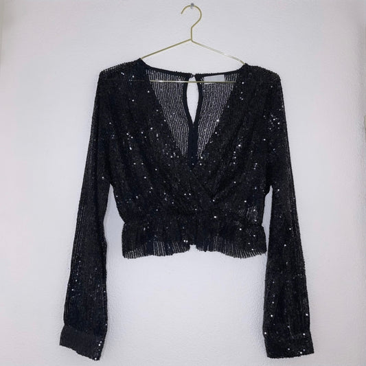 SOFIA GLITTER TOP ZWART