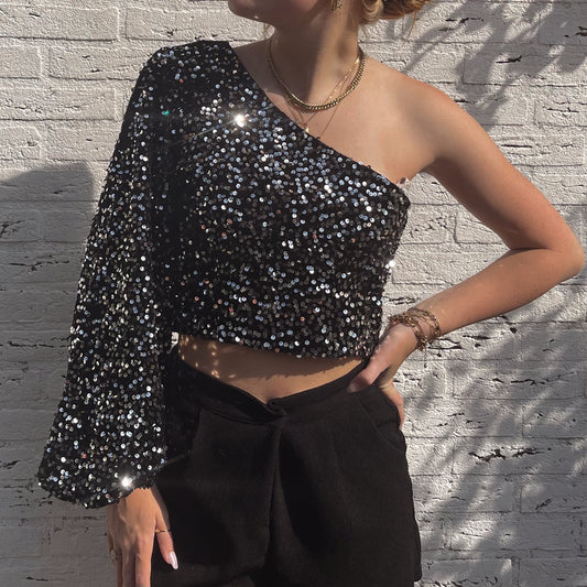 SOPHIA ONE SHOULDER GLITTER TOP WIT
